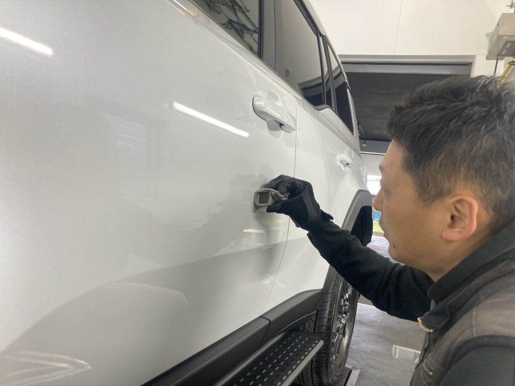 ボディの養生の後は、プロの技でボディ全体を美しく磨き上げ、車本来のツヤを最大限に引き出します。