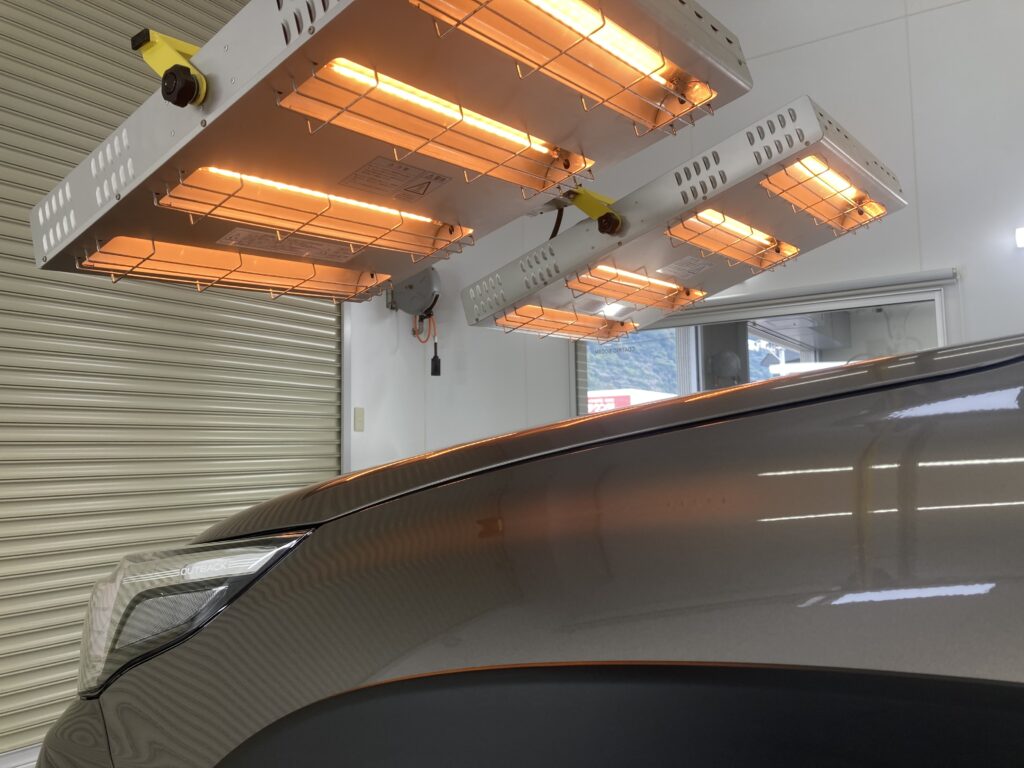 赤外線ヒーターで焼き付けることで、コーティング被膜が塗装に強力に定着しますので、コーティング施術後の初期不良なく、安心してお乗り頂けます。
