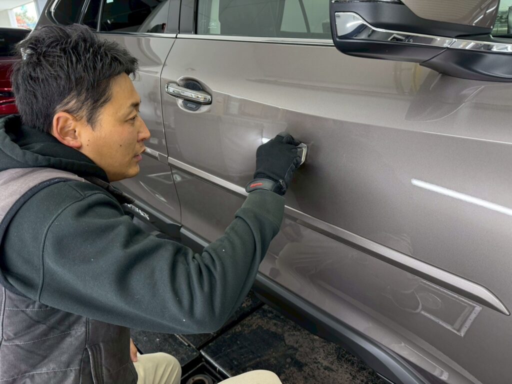 ボディの養生の後は、プロの技でボディ全体を美しく磨き上げ、車本来のツヤを最大限に引き出します。