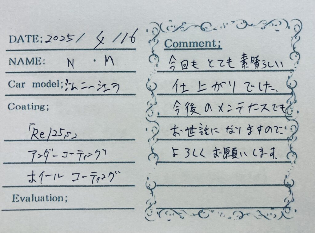 オーダーコーティング:「Re125s」「アンダーコーティング」