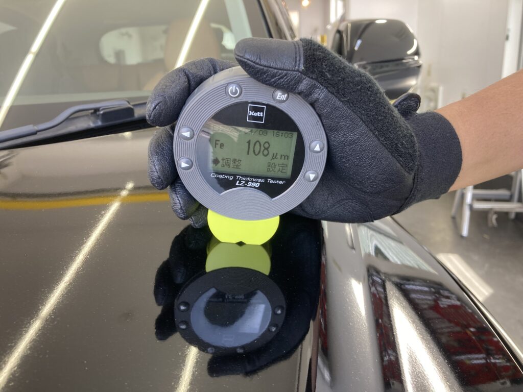 限りある塗装を必要以上に磨きすぎる事がないように、ボディ全体の塗装の厚みを計測いたします。
