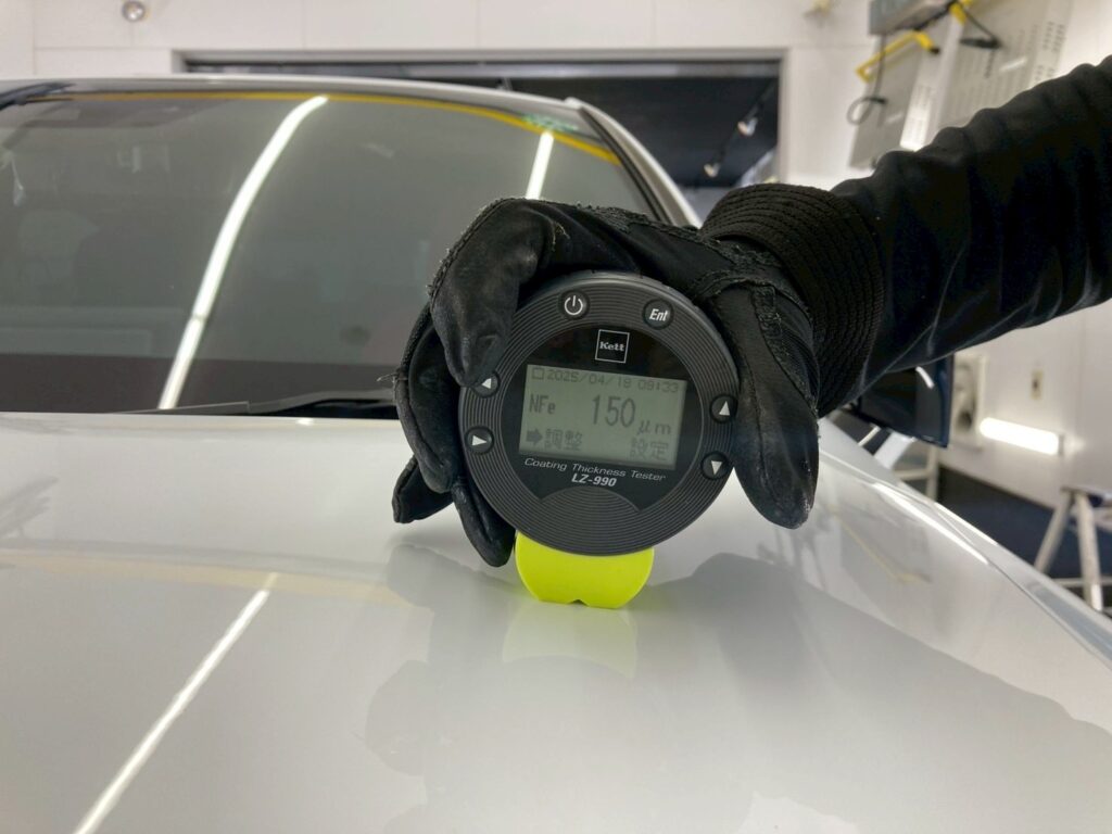 限りある塗装を必要以上に磨きすぎる事がないように、ボディ全体の塗装の厚みを計測いたします。