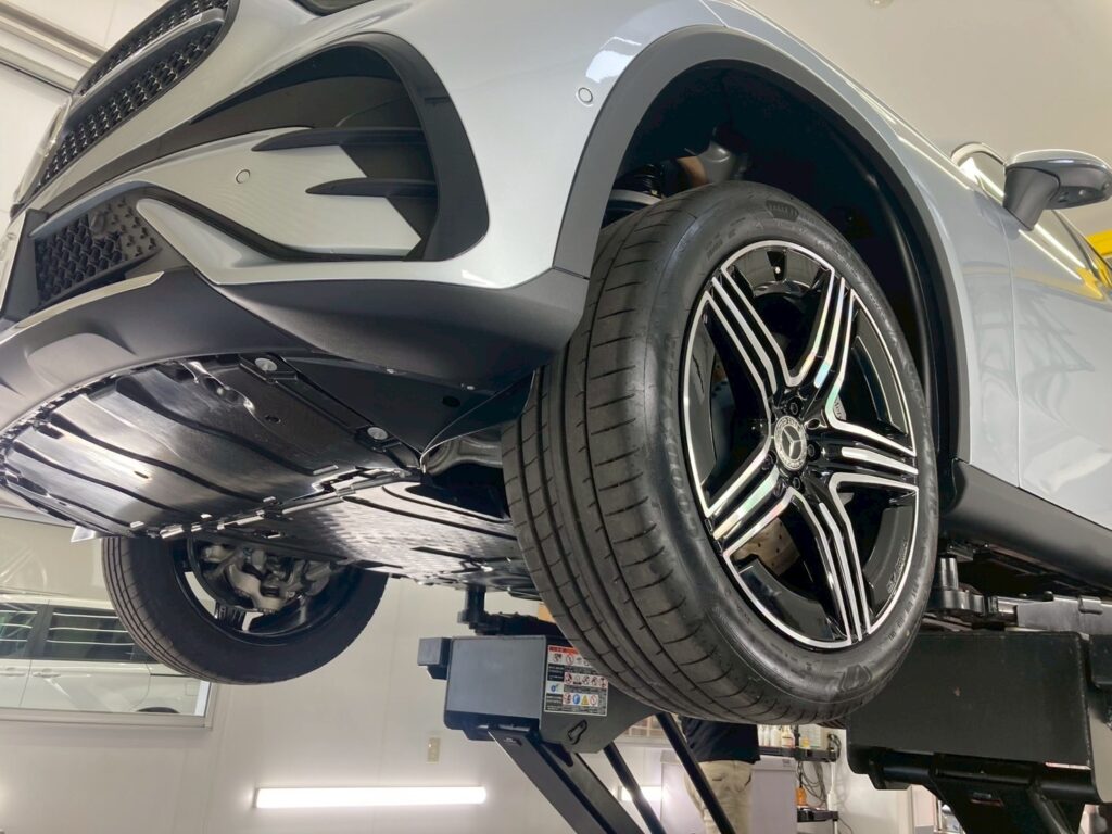 ボディ磨きで美しく仕上げたら、次は下回りの洗浄を行っていきます。RevoSでは施設面でも特許を取得しております。コーティング会社には珍しいリフトを備えておりますので、ご愛車を持ち上げて、ボディだけでなく、下回りも洗浄していきます。