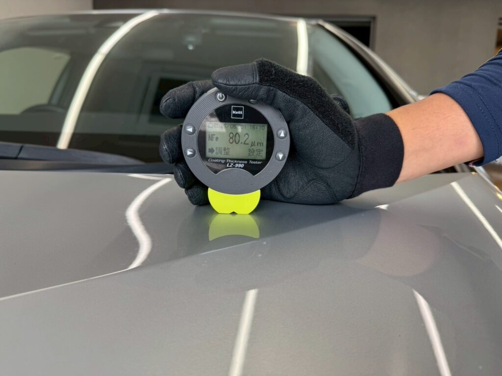 限りある塗装を必要以上に磨きすぎる事がないように、ボディ全体の塗装の厚みを計測いたします。