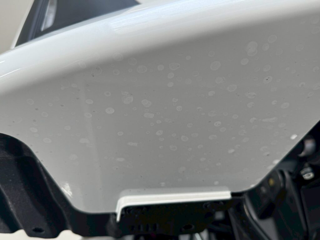 ボディ磨きで美しく仕上げたボディに、ご用命頂いた「Re125s」のコーティングを丁寧に塗り込み、さやにツヤツヤなボディに仕上げていきます。特許タイプの「Re125s」は、バインダーと呼ばれる半浸透膜を施術するので、磨き後のボディを滑らかにし、手触りもツルツルで、お手入れもしやすい、おすすめコーティング