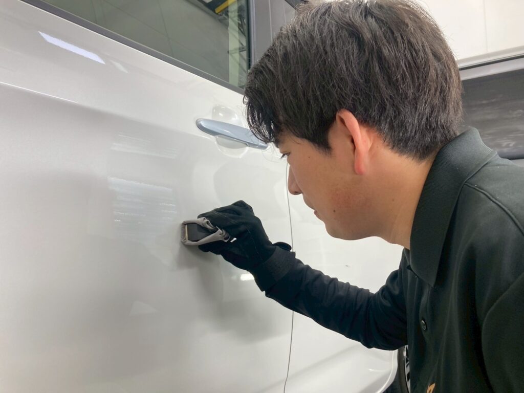 ボディの養生の後は、プロの技でボディ全体を美しく磨き上げ、車本来のツヤを最大限に引き出します。