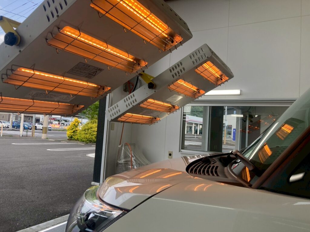 赤外線ヒーターで焼き付けることで、コーティングが塗装に強力に定着しますので、コーティング施術後の初期不良なく、安心してお乗り頂けます。