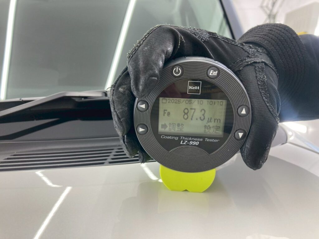 限りある塗装を必要以上に磨きすぎる事がないように、ボディ全体の塗装の厚みを計測いたします。