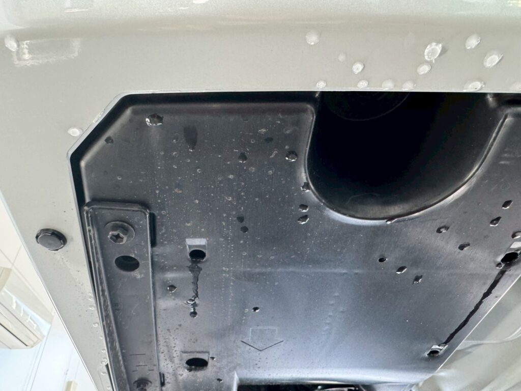 足元もキレイになりました!下回り洗浄後は、ボディコーティングを行っていきます。