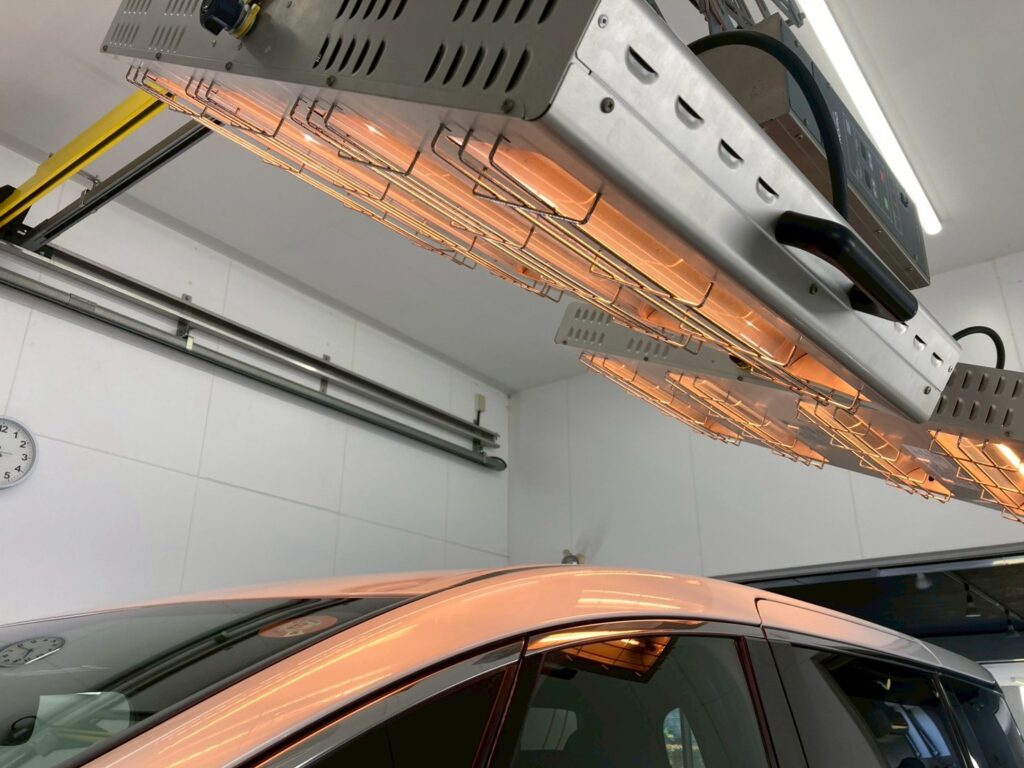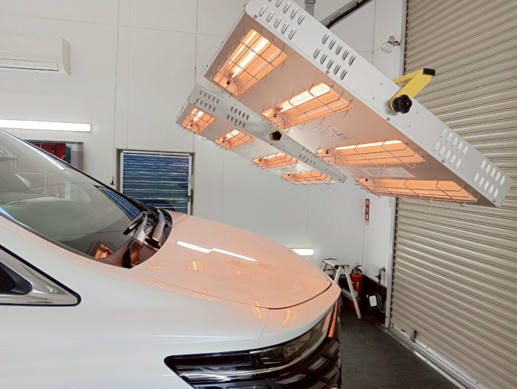 赤外線ヒーターで焼き付けることで、コーティング被膜が塗装に強力に定着しますので、コーティング施術後の初期不良なく、安心してお乗り頂けます。