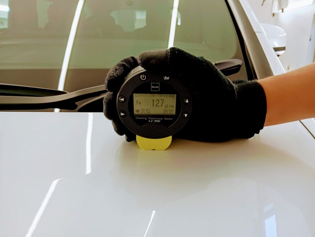 限りある塗装を必要以上に磨きすぎる事がないように、ボディ全体の塗装の厚みを計測いたします。