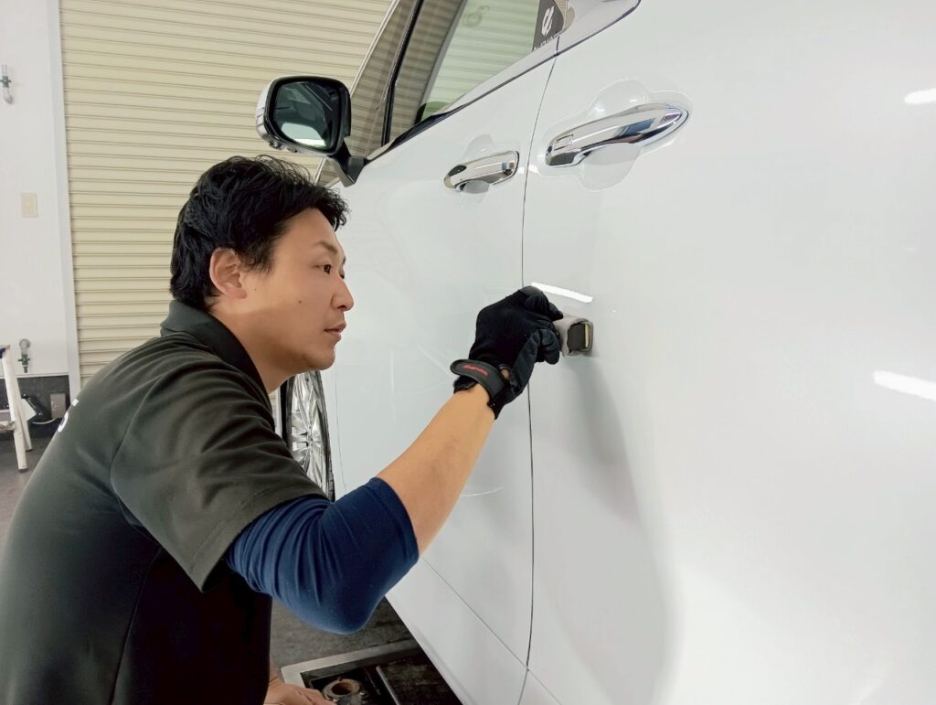 ボディの養生の後は、プロの技でボディ全体を美しく磨き上げ、車本来のツヤを最大限に引き出します。