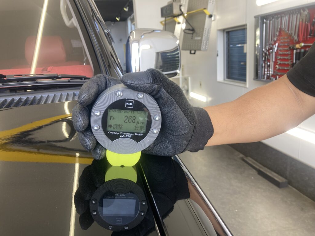 限りある塗装を必要以上に磨きすぎる事がないように、ボディ全体の塗装の厚みを計測いたします。