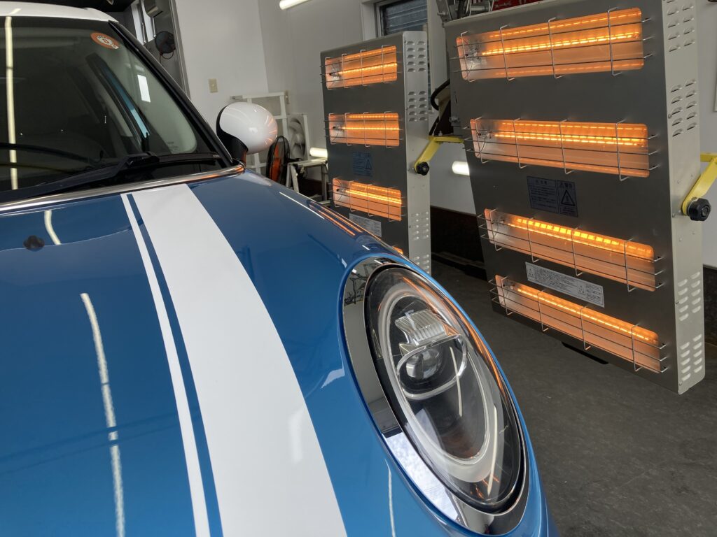 赤外線ヒーターで焼き付けることで、コーティング被膜が塗装被膜に強力に定着をいたしますので、