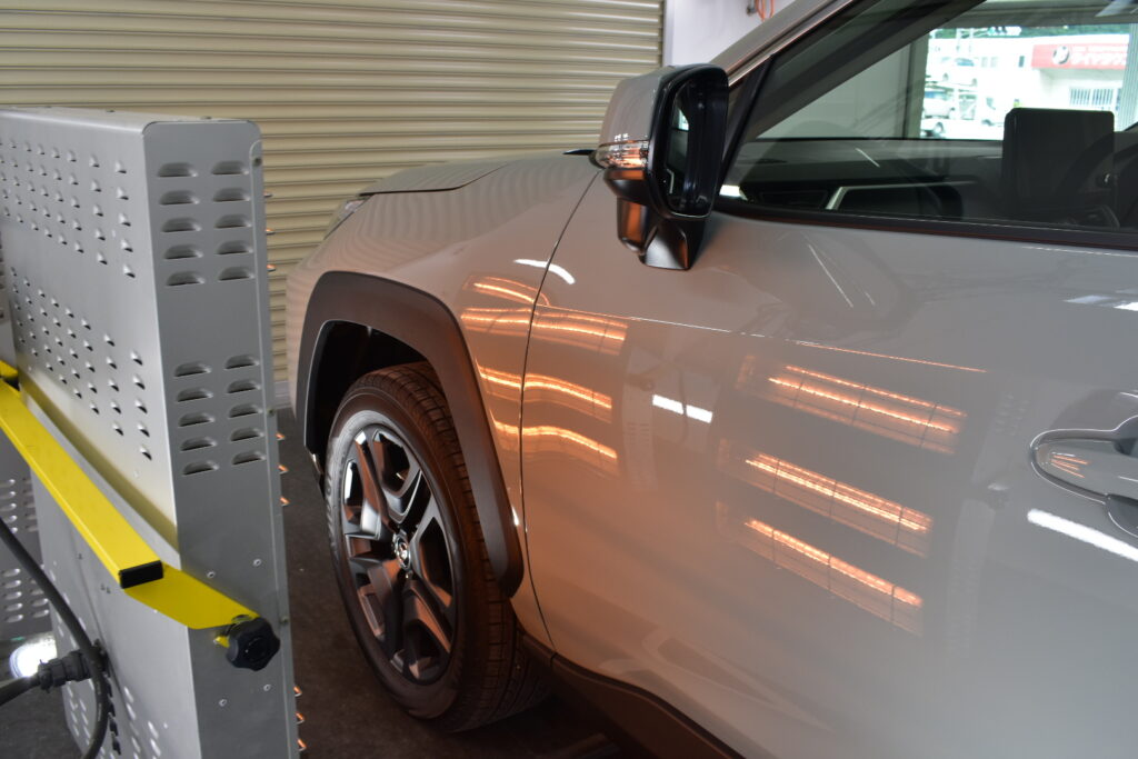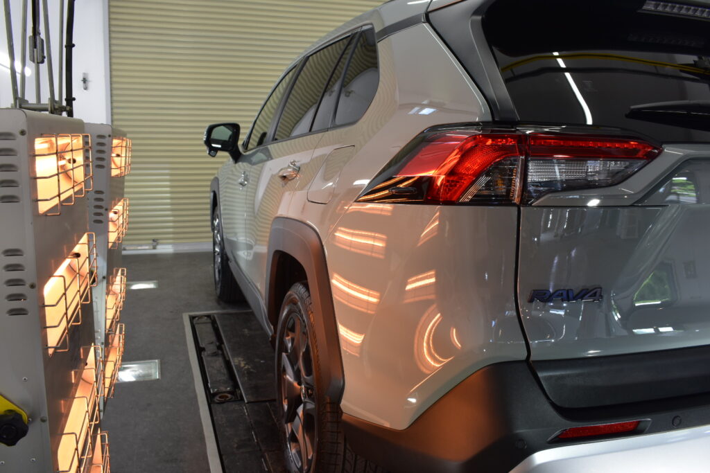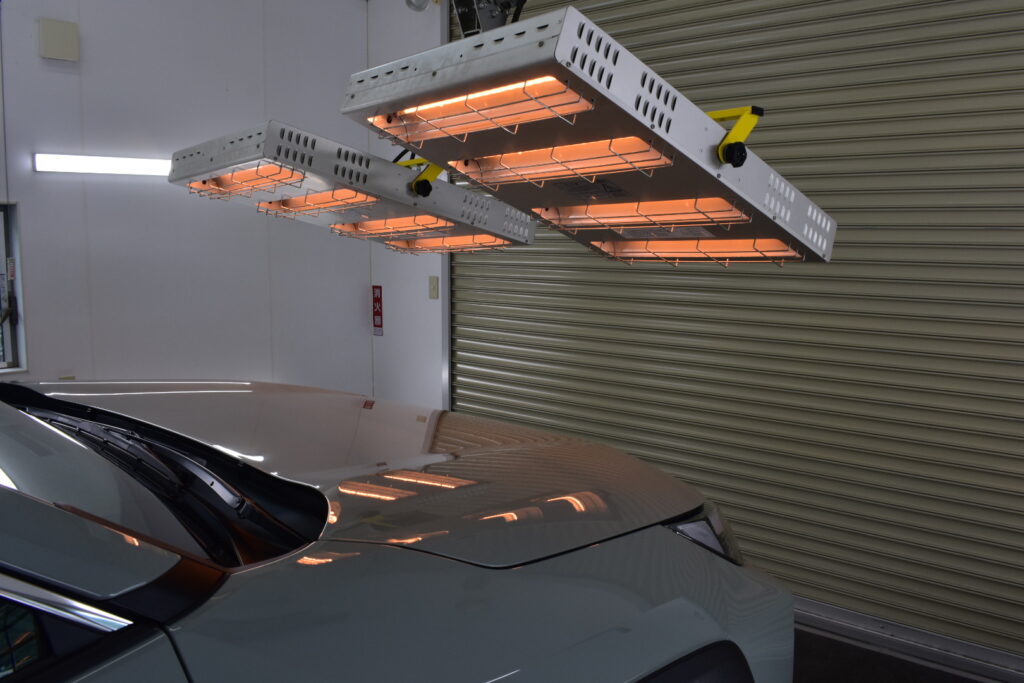 赤外線ヒーターで焼き付けることで、コーティング被膜が塗装に強力に定着をいたしますので、