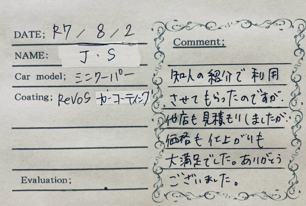 オーダーコーティング:「RevoSカーコーティング」