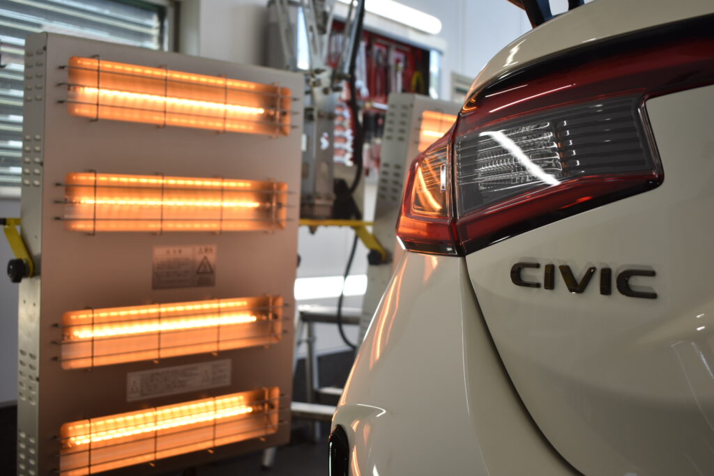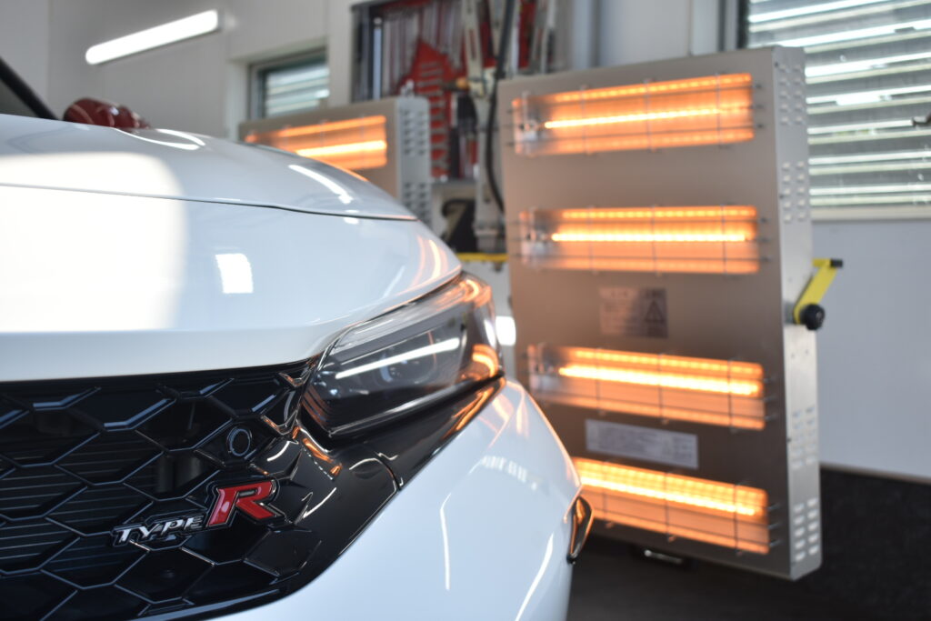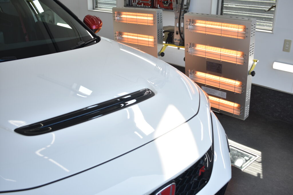 赤外線ヒーターで焼き付けることで、コーティング被膜が塗装に強力に定着しますので、コーティング施術後の初期不良なく、安心してお乗り頂けます。