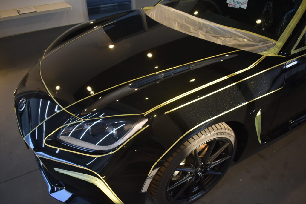 新車のため、状態は良好ですが、細かな水アカなどをしっかりと洗浄し、見た目にもスッキリと!水アカや汚れをキレイに落としたあとは、塗装の状態をチェックします。