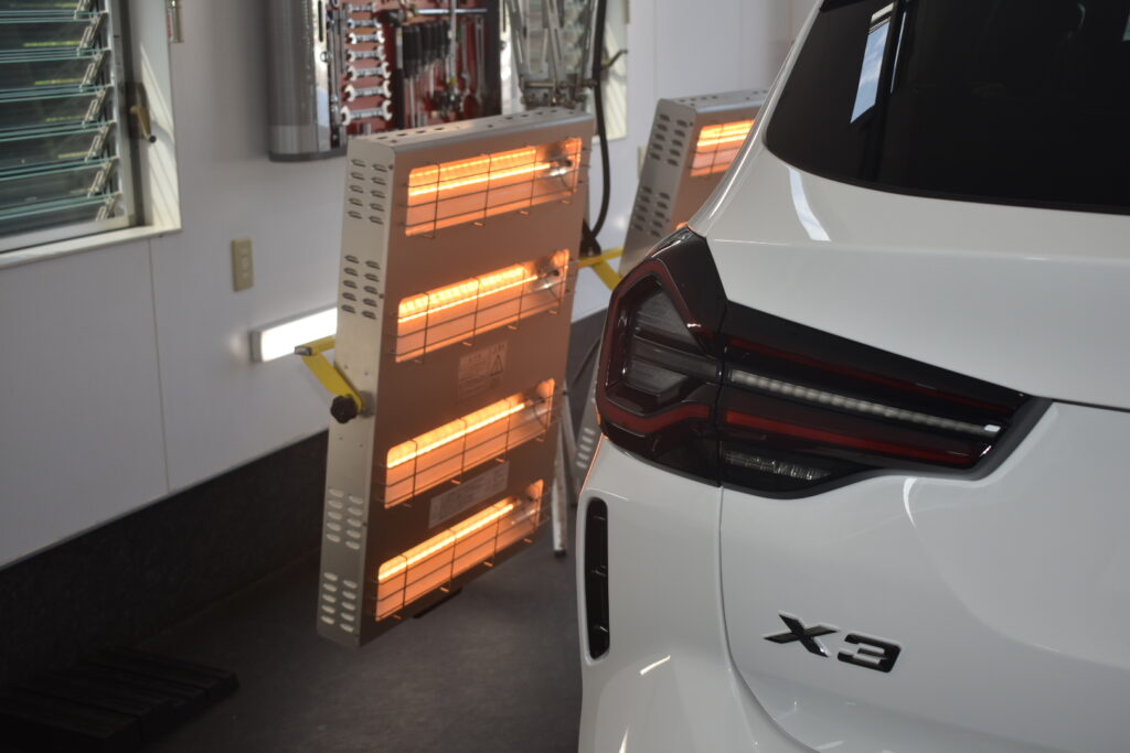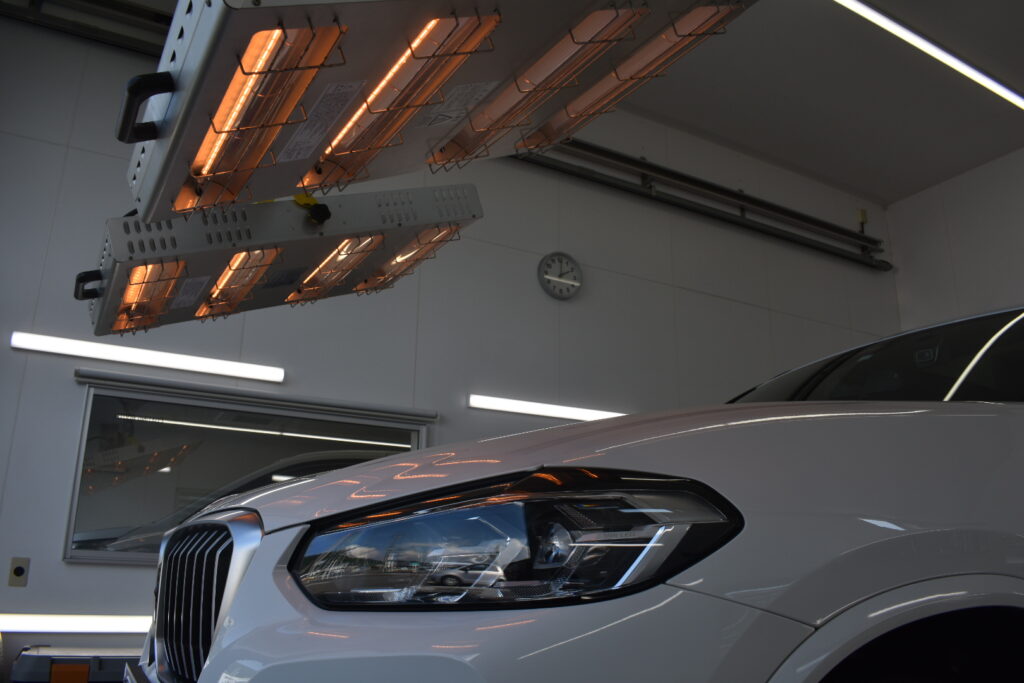 赤外線ヒーターで焼き付けることで、コーティングが塗装に強力に定着をいたしますので、コーティング施術後の初期不良がなく安心してお乗りいただけます。