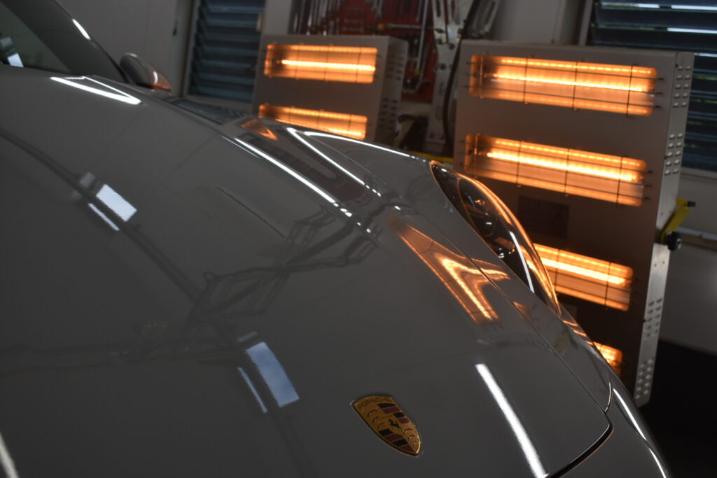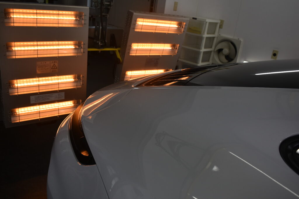 赤外線ヒーターで焼き付けることで、コーティングが塗装に強力に定着をいたしますので、