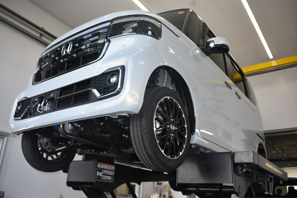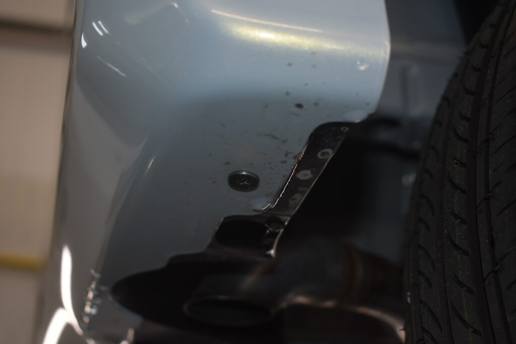 汚れを落とし、スッキリとキレイな白に!下回り洗浄後は、ボディコーティングを行っていきます。