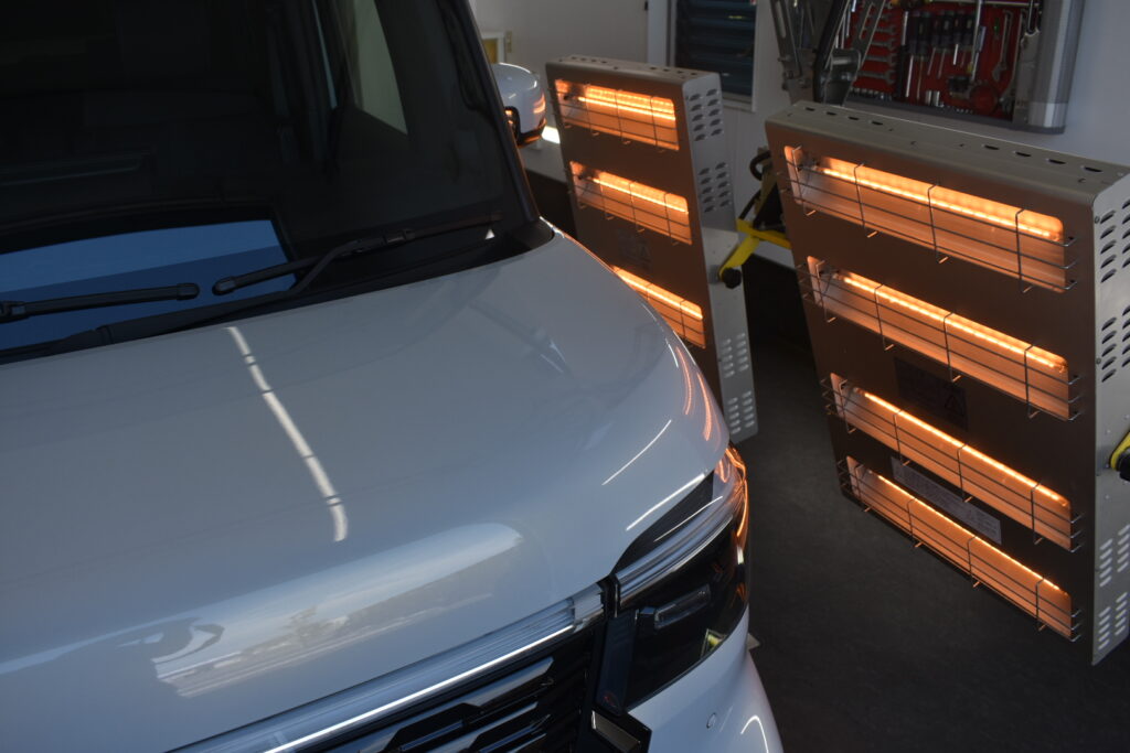赤外線ヒーターで焼き付けることで、コーティング被膜が塗装に強力に定着しますので、コーティング施術後の初期不良なく、安心してお乗り頂けます。