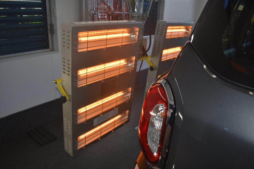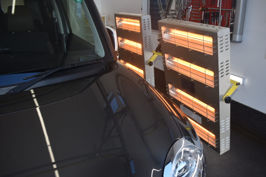 赤外線ヒーターで焼き付けることで、コーティングが塗装に強力に定着をいたしますので、