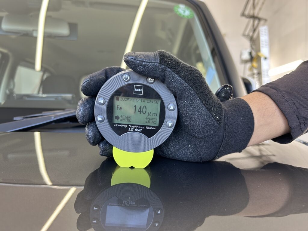 限りある塗装を必要以上に磨きすぎる事がないように、ボディ全体の塗装の厚みを計測いたします。