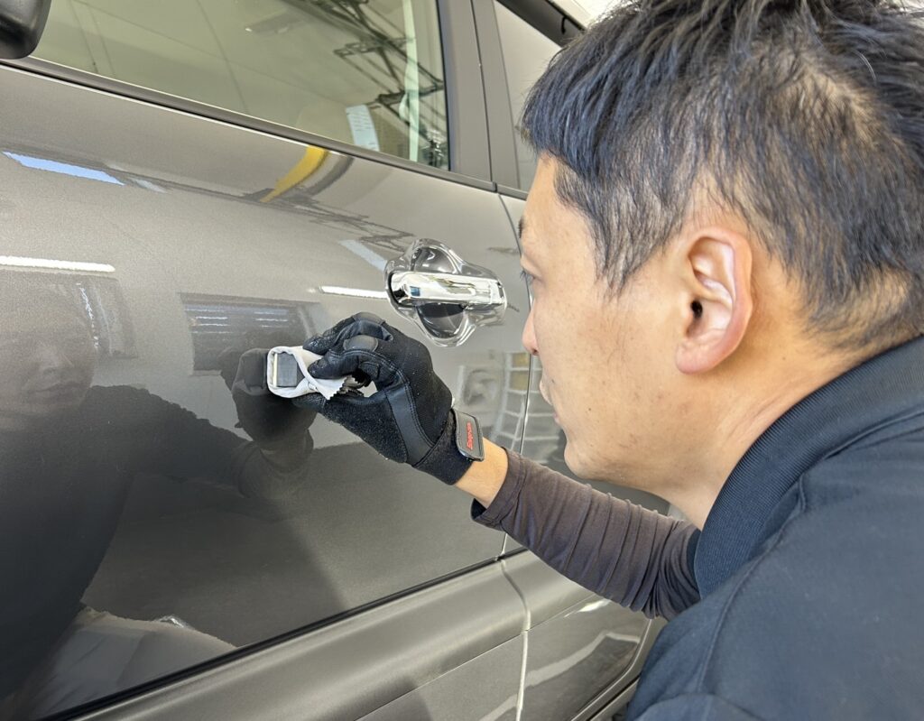 ボディ磨きで美しく仕上げたら、ご用命いただいたボディコーティングを丁寧に塗り込み、さらに艶々なボディに仕上げます。