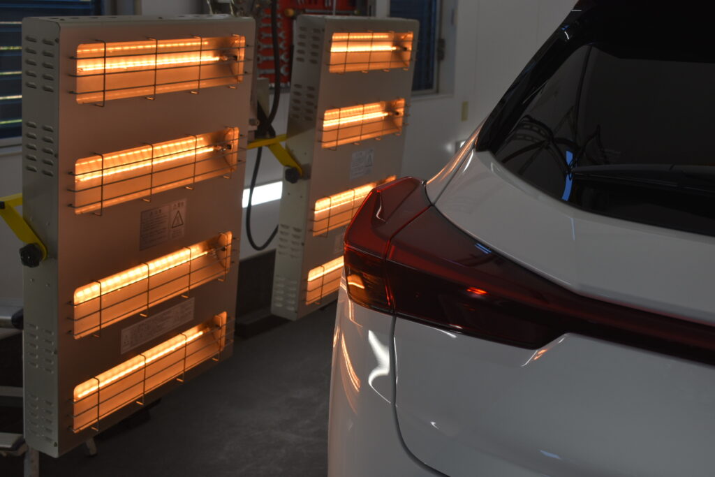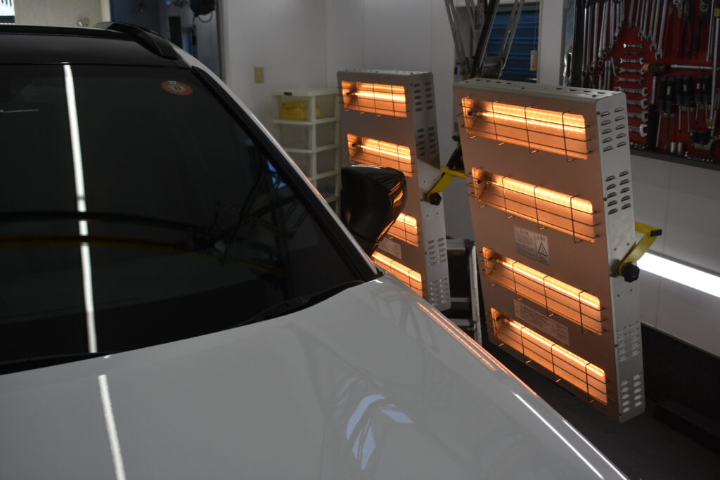 赤外線ヒーターで焼き付けることで、コーティング被膜が塗装に強力に定着しますので、コーティング施術後の初期不良なく、安心してお乗り頂けます。
