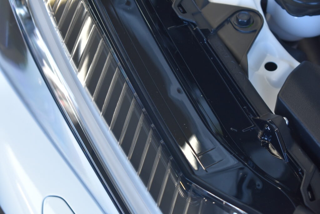 新車のため、状態は良好ですが、細かな水アカなどをしっかりと洗浄し、見た目にもスッキリと!水アカや汚れをキレイに落としたあとは、塗装の状態をチェックします。