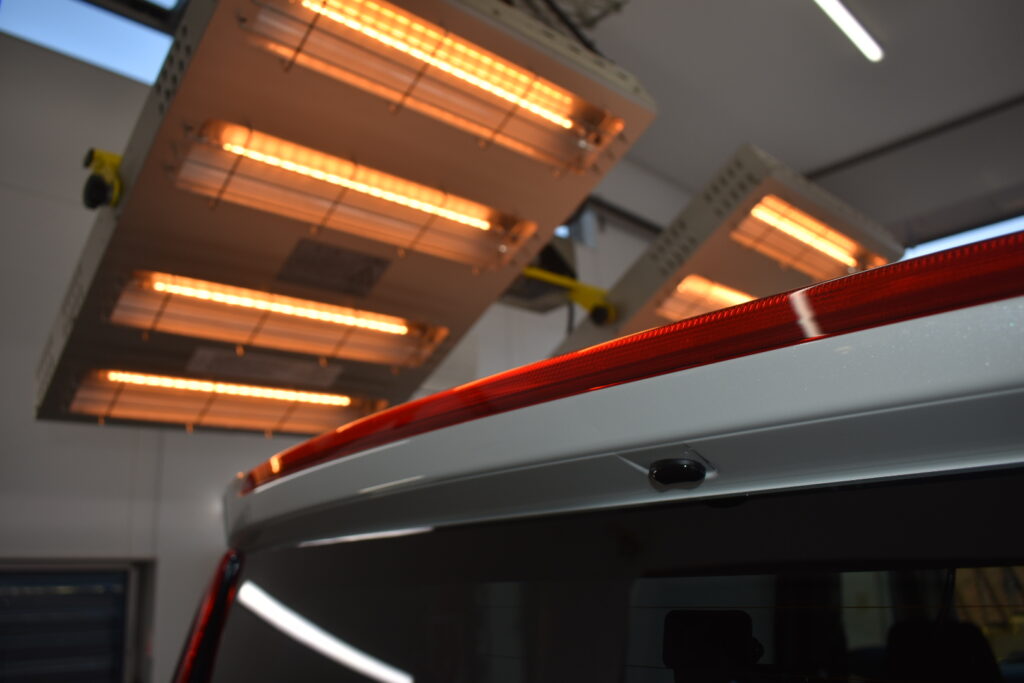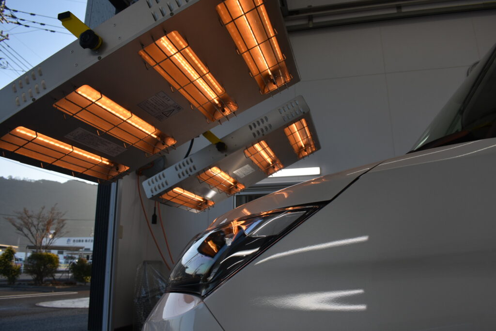 赤外線ヒーターで焼き付けることで、コーティングが塗装に強力に定着をいたしますので、