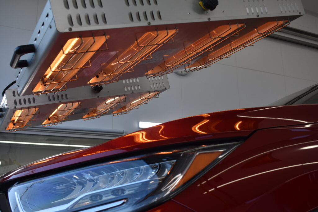 赤外線ヒーターで焼き付けることで、コーティングが塗装に強力に定着をいたしますので、