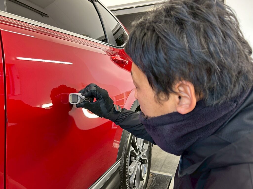 限りある塗装を必要以上に磨きすぎる事がないように、ボディ全体の塗装の厚みを計測いたします。
