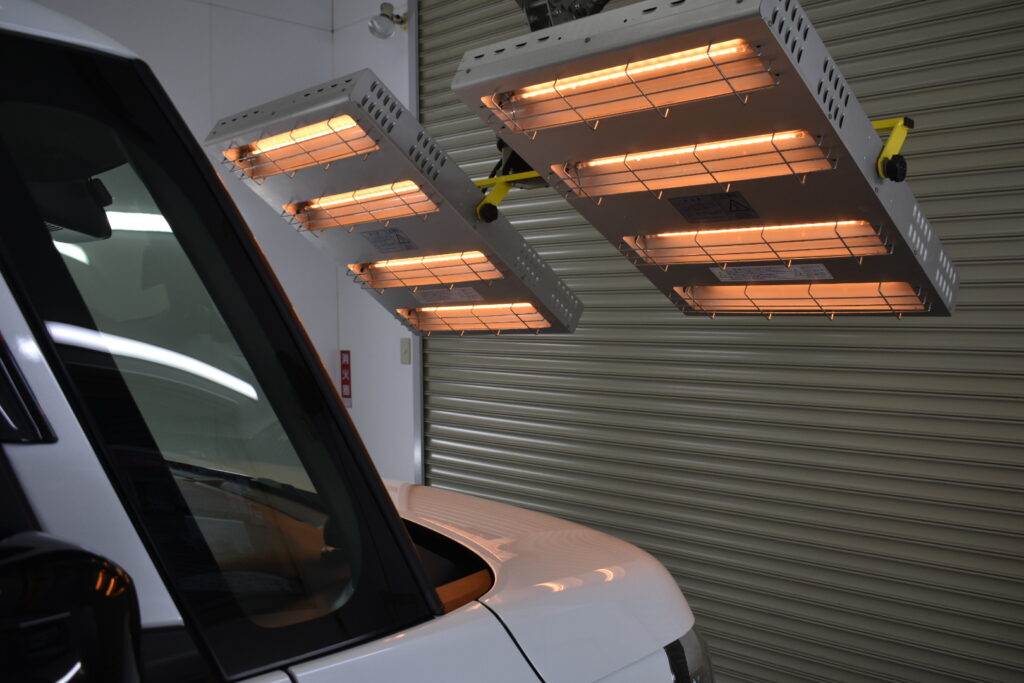 赤外線ヒーターで焼き付けることで、コーティング被膜が塗装に強力に定着しますので、コーティング施術後の初期不良なく、安心してお乗り頂けます。
