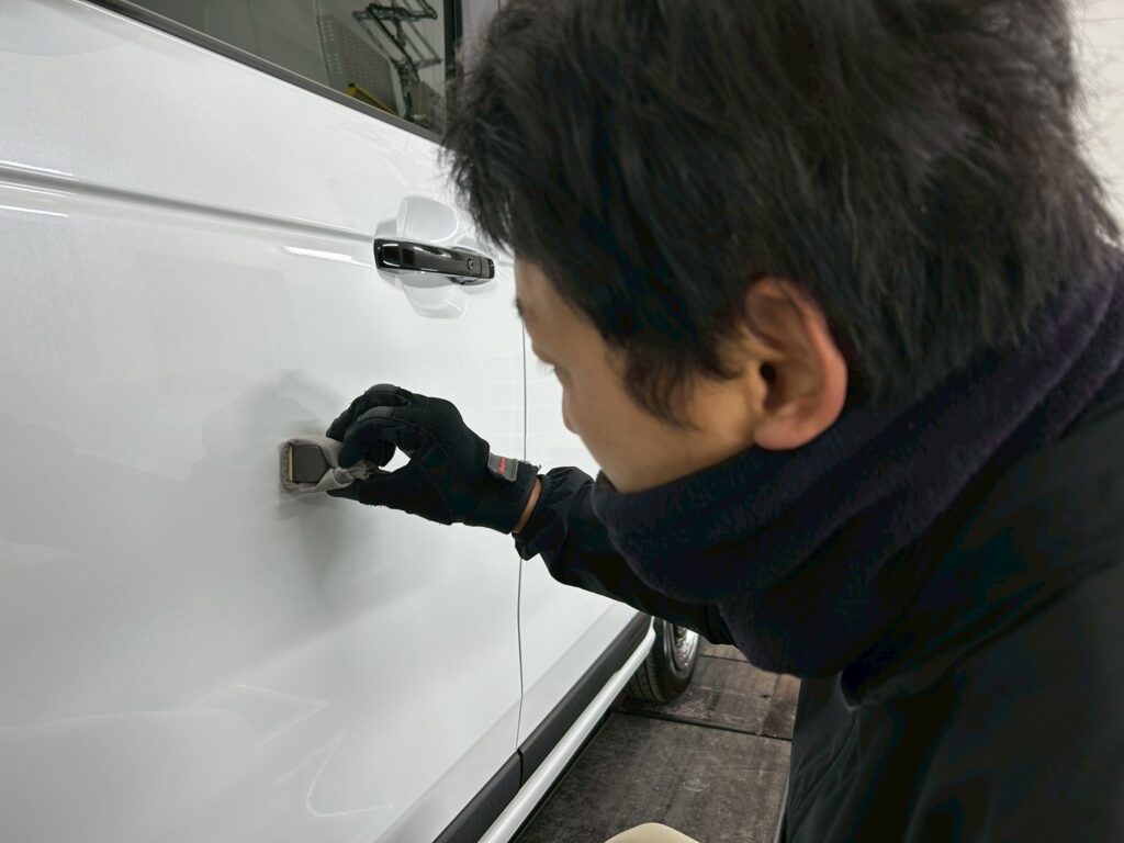 ボディの養生の後は、プロの技でボディ全体を美しく磨き上げ、車本来のツヤを最大限に引き出します。