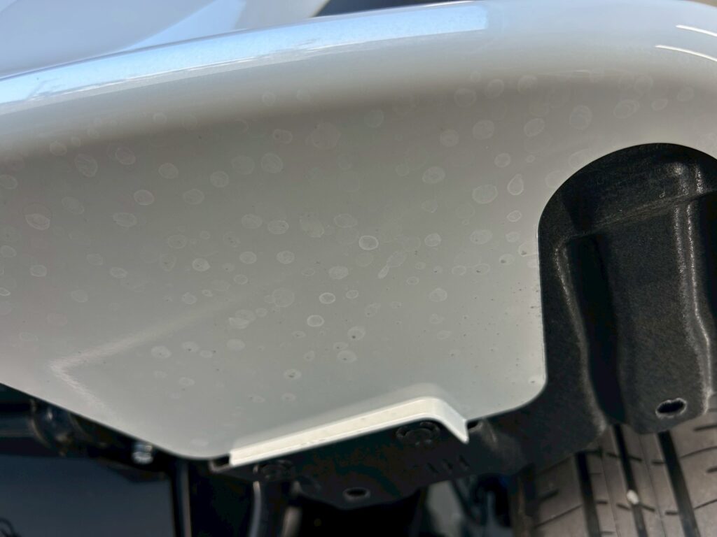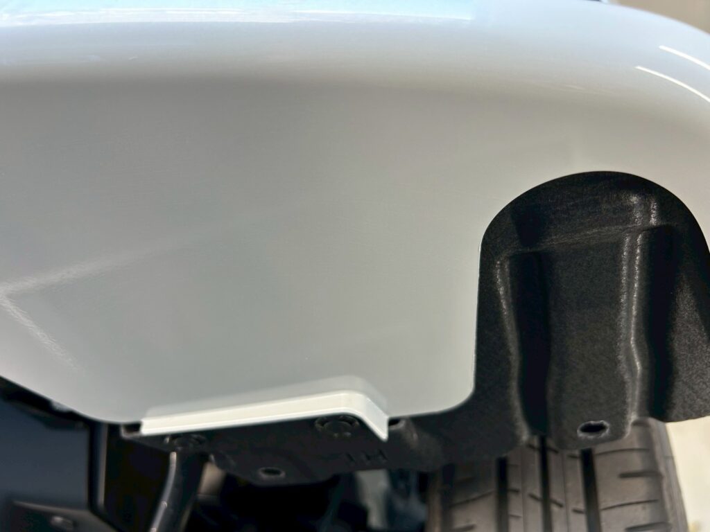 汚れを落とし、スッキリとキレイな白に!下回り洗浄後は、ボディコーティングを行っていきます。