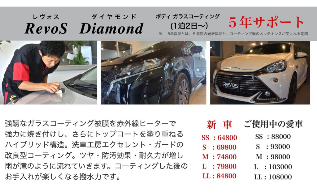 ※新車の場合は、RevoS Diamond はポリッシング(塗装研磨)無し。