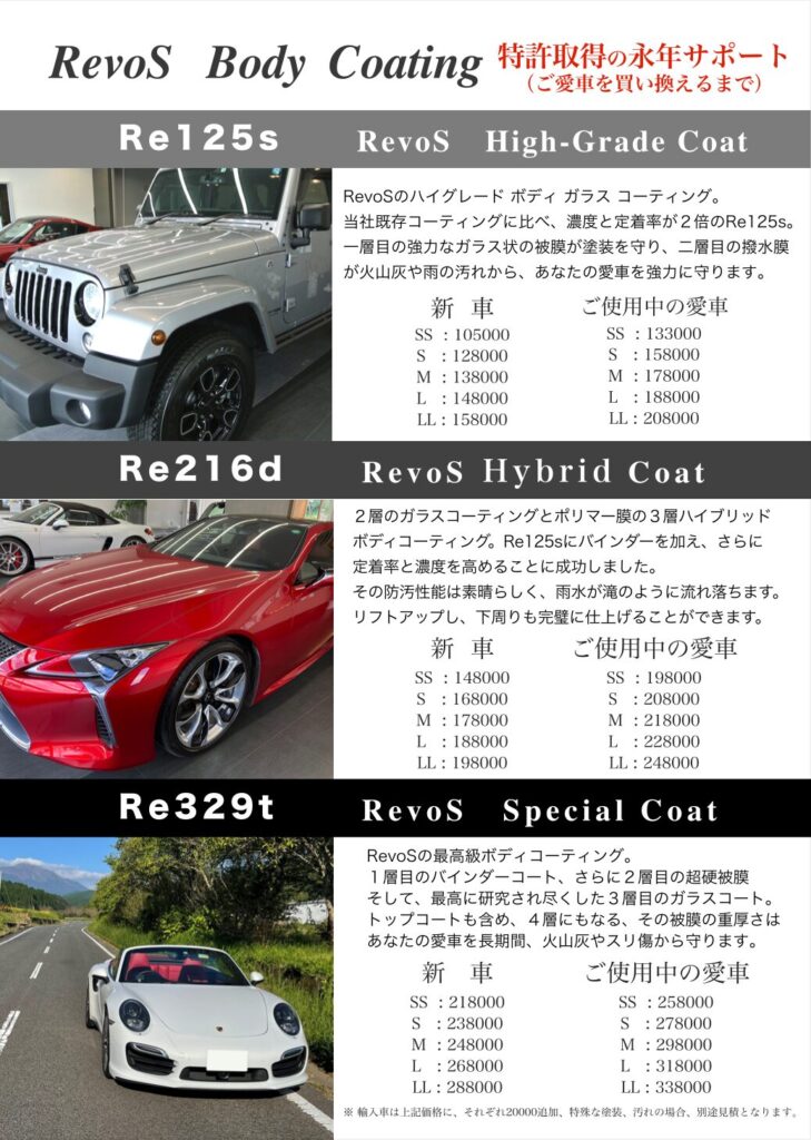 RevoSでは、あなたのご要望と、ご愛車に合わせたオーダーコーティングを
